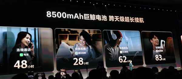 该机搭载8500mah电池,是华为手机史上最大容量,采用超级聚能泵技术,可用容量提升10%,电池容量释放率超过98%。