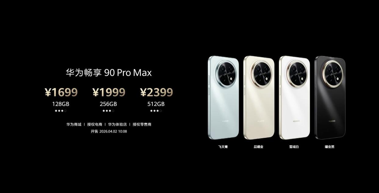 3月23日下午,华为在春季全场景新品发布会上正式推出畅享系列首款pro max机型——华为畅享90 pro max。