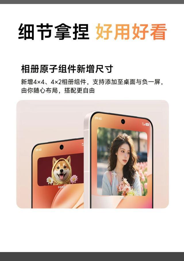 - 相册原子组件新增尺寸,新增 4x4、4x2 相册组件,支持添加至桌面与负一屏。