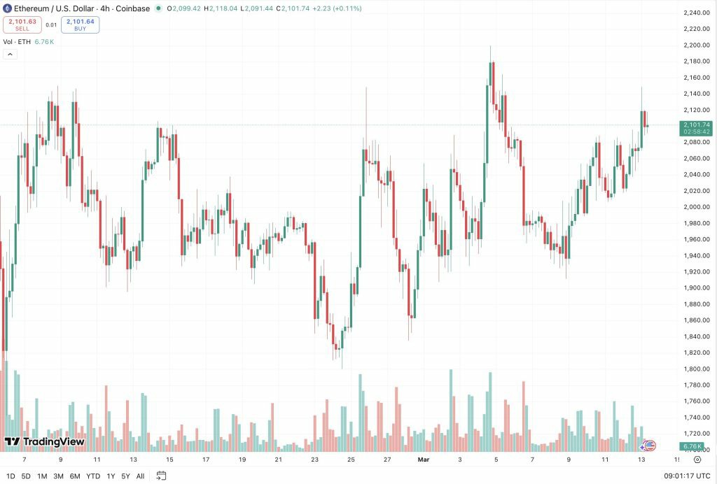 此消息发布之际,以太坊价格隔夜飙升 +2.8%,并正重新回到 2,100 美元以上,进入周末。