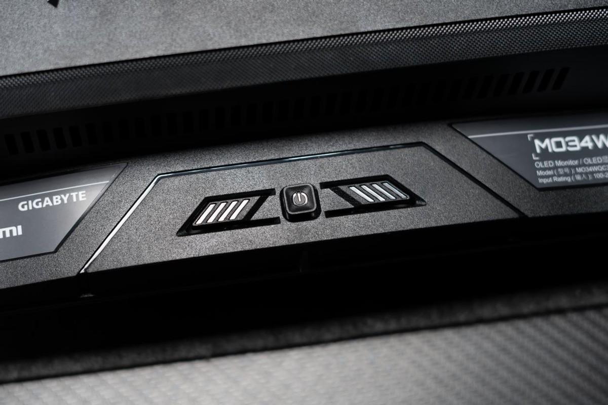 技嘉mo34wqc36的按键位于屏幕正下方,为2个实体按键和1个五维摇杆的组合,功能明确、操作逻辑清晰,上手难度极低,使用起来得心应手。其中五维摇杆按下为打开osd菜单,向左拨为音量调节、向右拨为输入接口选择、向下拨为影像模式调节、向上拨为ai黑平衡调节。