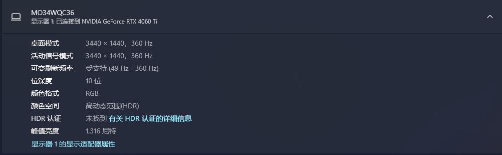技嘉mo34wqc36采用了一块34英寸oled屏幕,具备3440×1440分辨率,10bit色深、99% dci-p3色域,delta e<2,屏幕均匀性优秀,搭载黑曜保护膜与hypernits技术,hdr峰值亮度达1300尼特,画质表现出色。同时显示器还具有360hz超高刷新率、0.03ms gtg响应,通过vesa clearmr 18000认证,在游戏流畅性方面表现也是可圈可点。总的来说,这是一款视觉体验相当优秀的高端电竞显示器。