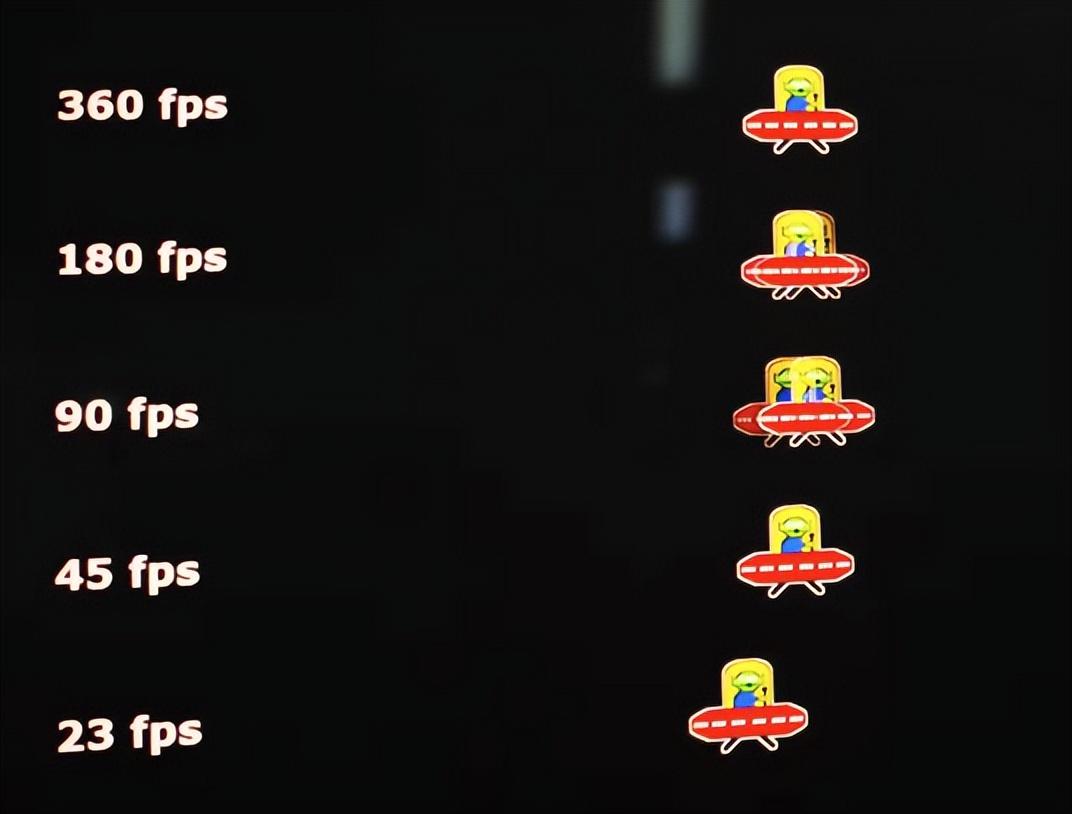 我们还是先用ufo test测试屏幕的刷新率,在刷新率测试中,屏幕刷新率一直稳定在360hz,表明屏幕参数并无虚标。通过相机抓拍的情况来看,在360hz刷新率下,小飞碟的运动最为连贯且没有任何拖影和模糊的现象。