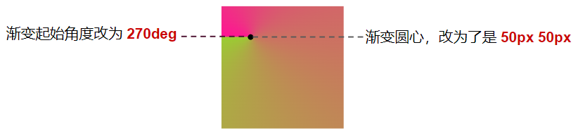 background: conic-gradient(from 270deg at 50px 50px, deeppink, yellowgreen);